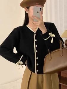 韩系甜美风短款针织开衫女秋冬季设计感小众系带毛衣外套外搭上衣