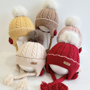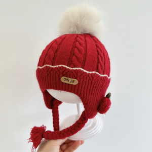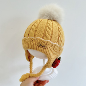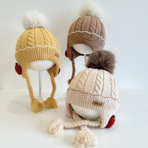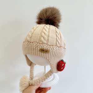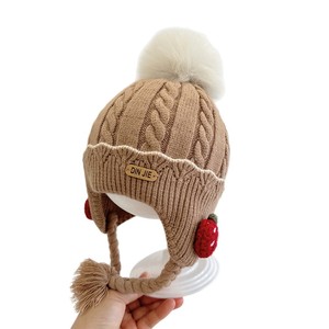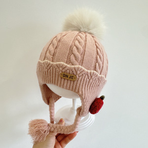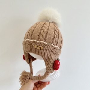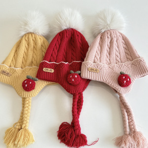 草莓小辫护耳婴儿帽子冬女宝宝儿童针织毛线帽女童保暖防风公主帽