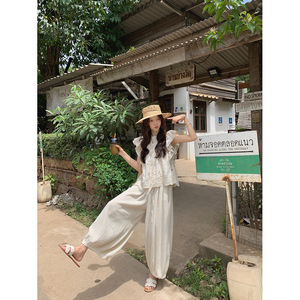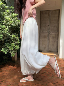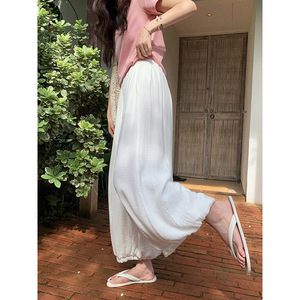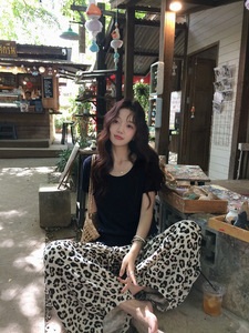 张贝贝 100棉肌理褶皱感松弛空气感豹纹/纯色透气薄阔腿灯笼裤女