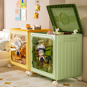 多巴胺收纳箱家用翻盖双开门大容量衣服整理箱衣物被子带轮储物柜