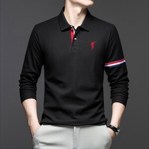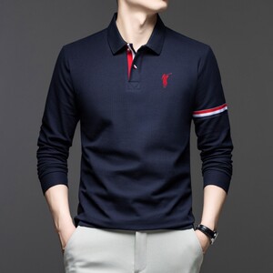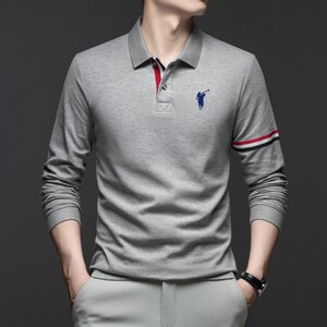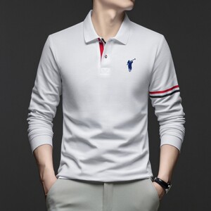 秋季纯棉男士polo衫2025新款中年商务休闲刺绣马标翻领长袖男t恤