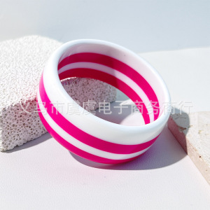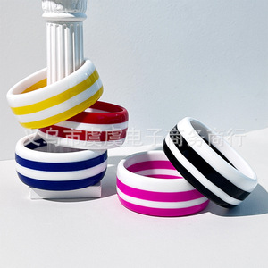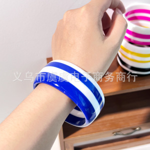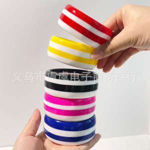 虞虞 欧美新款双色分层树脂手镯时尚百搭 个性复古几何圆形手环