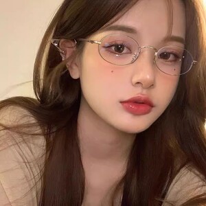 男女同款银色小框眼镜女椭圆形小脸金属平光镜可配近视素颜眼镜架