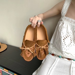 滨莉欧洲站女秋季网红新款内增高磨砂皮编织流苏圆头平底舒适单鞋