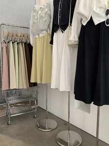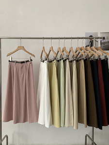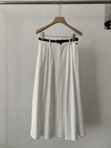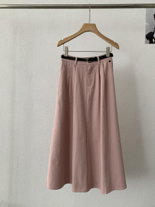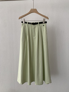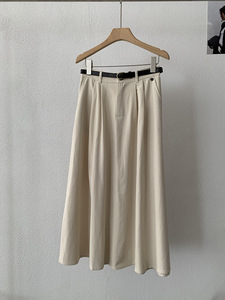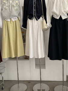 欧玛莱 韩日复古小扣子撞色洗水棉半身裙高腰显瘦A字中长伞裙4354