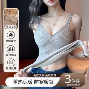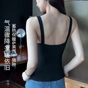 秋冬款塑形磨毛V领保暖背心一体式内搭显瘦无痕美背打底保暖上衣