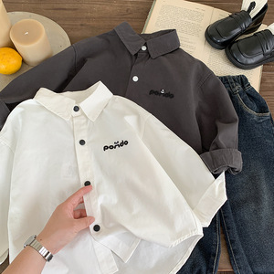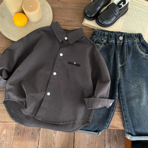 儿童长袖衬衫优元秋季新款2025男童秋装衬衣纯棉A类纯色休闲上衣