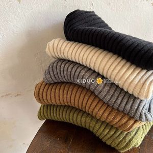 韩国童装儿童打底衫秋冬季新男女童纯色坑条毛衣宝宝高领弹力线衫