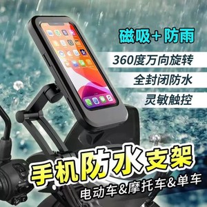 跨境摩托车自行车手机支架防水包外卖骑行导航电动车磁吸防水支架
