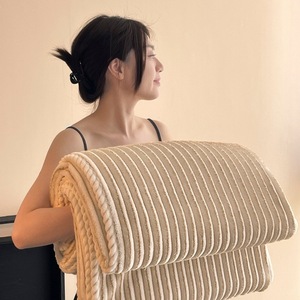 2025新款毛毯亲肤舒适抽条阳离子毯子休闲盖毯多功能午休毯跨境
