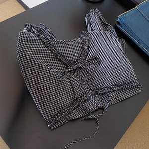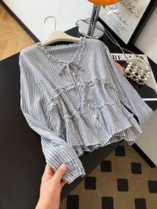 广州十三行高货爆款~V领长袖格子衬衫女秋2025设计感宽松减龄上衣