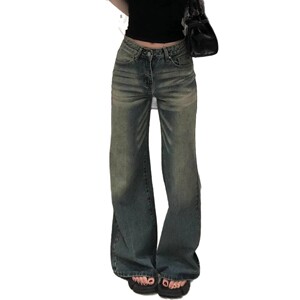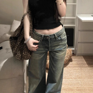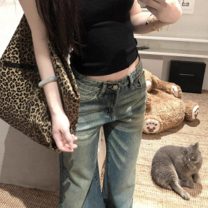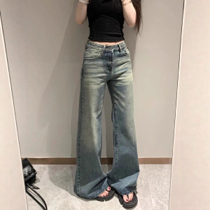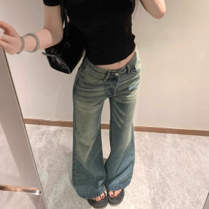 【韩牛】辣妹低腰宽松显瘦百搭夏季新款美式复古水洗微喇牛仔裤女