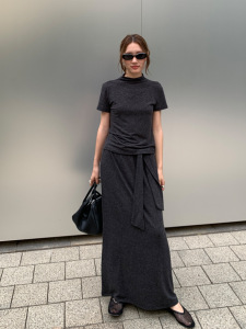 THE MIND半高领上衣+绑带半身裙2025秋季韩版休闲两件套装T5352Q