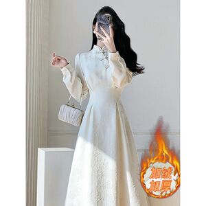 秋冬新款新中式改良旗袍加绒连衣裙女国风高级感大衣内搭打底长裙