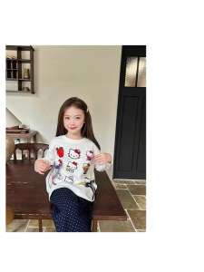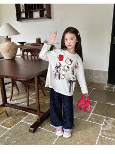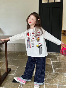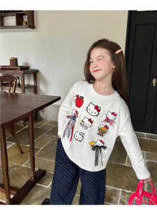 纯棉T恤女童宽松长袖立体卡通KT猫T恤2025春秋季新款儿童女童秋款