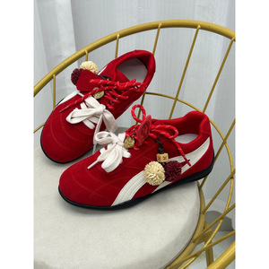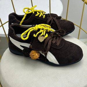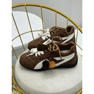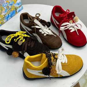 跨境法式复古运动休闲鞋新款绒面内增高时尚鞋松果牛皮德训鞋