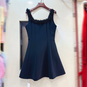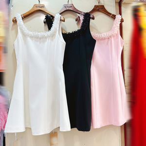南油欧美澳洲小众设计师立体花瓣钉珠无袖轻奢连衣裙小礼裙