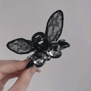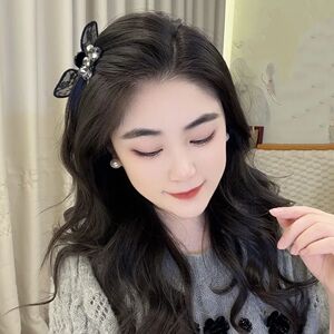 黑色精灵耳发夹甜美可爱侧边刘海夹AB面小号抓夹蝴蝶结水钻发饰
