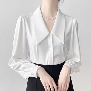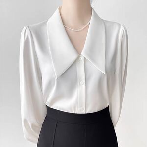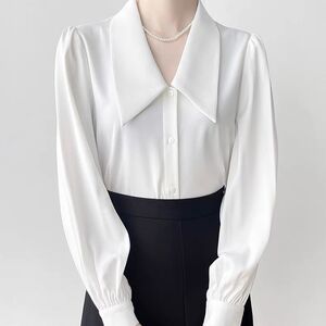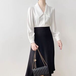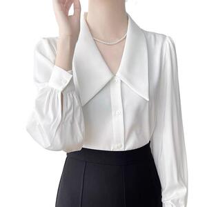 白色衬衫女士秋装新款长袖职业lo通勤面试衬衣法式方领长袖上衣