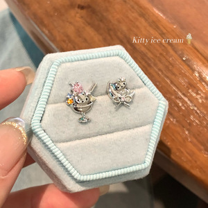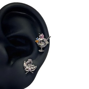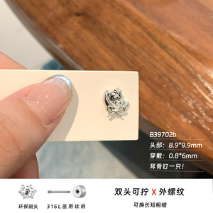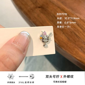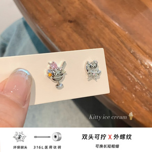 钛钢耳钉养耳洞锆石耳钉KT猫耳骨钉锆石耳饰耳蜗钉316L医用钛钢