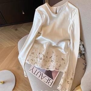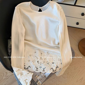 新中式国风下摆镂空上衣2025新款春季简约圆领时尚内搭外穿打底衫