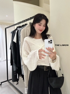 THE LEMON柠檬绿茶温柔风交叉设计感镂空罩衫+内搭背心两件套装女