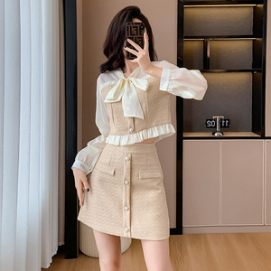 2025秋季新款小香风两件套小个子收腰显瘦气质名媛木耳边修身套装