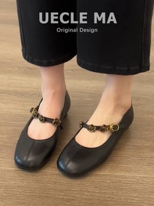 现货版1.5cm圆头缝线浅口单鞋女2025春秋新款百搭一字带玛丽珍鞋