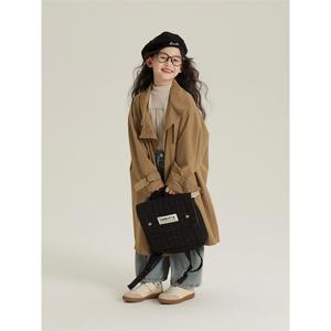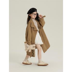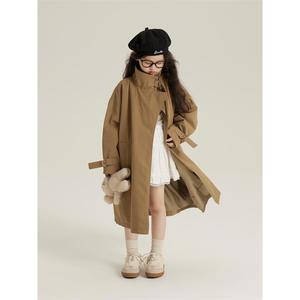 女童长款外套2025秋装新款中大童洋气英伦风卡其风衣女孩休闲大衣