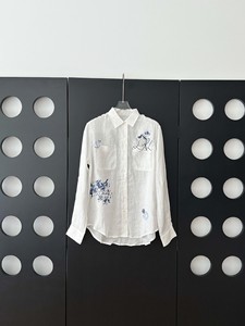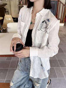 瀚柯 RL 数码印花微宽松单口袋亚麻长袖衬衫