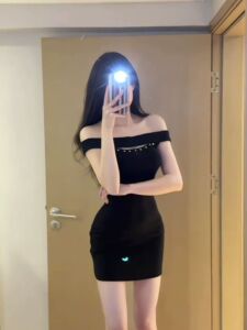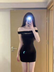 法式复古纯欲风一字肩连衣裙女夏季新款设计感小众修身显瘦包臀裙