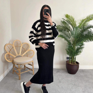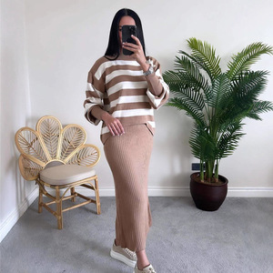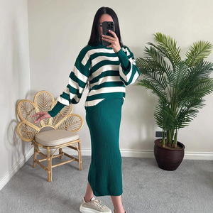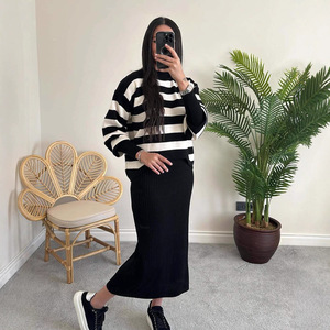 欧美女装跨境外贸时尚2025秋季新款保暖韩版宽松百搭条纹针织毛衣