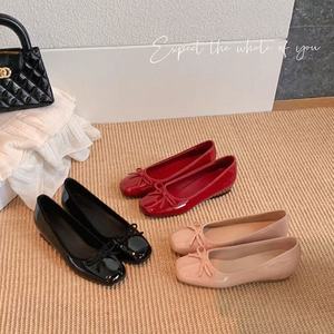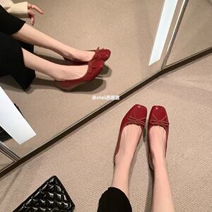 【葡萄妈同款】45mm内增高~超软方头蝴蝶结通勤芭蕾舞鞋女鞋