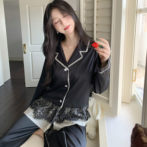 法式新款春秋季轻奢甜美可爱少女风高级感色丁女士睡衣套装家居服