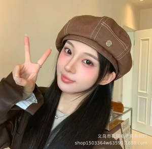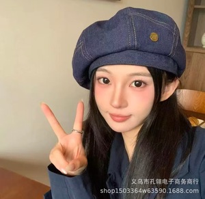 英伦复古牛仔贝雷帽女春秋新款日系复古显脸小画家帽大头围八角帽
