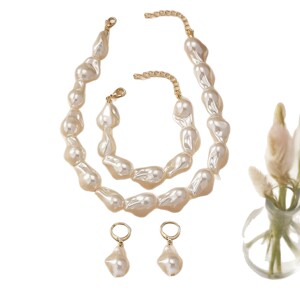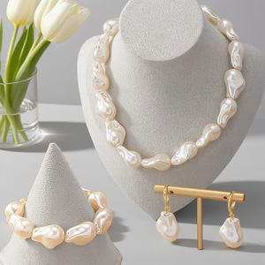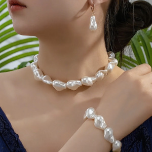 跨境欧美时尚仿巴洛克珍珠颈链手链耳坠首饰套装异形仿珍珠时尚套