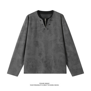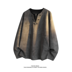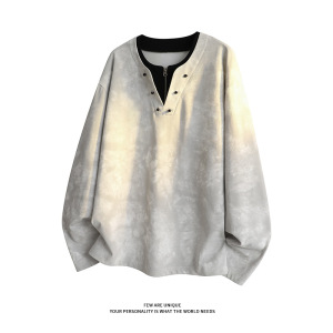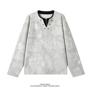 男款长袖t恤水墨染美式潮流宽松透气舒适百搭体恤衣服慵懒风情侣