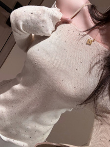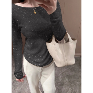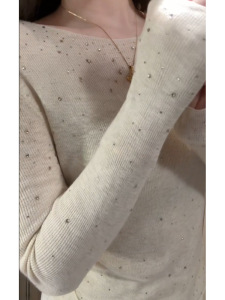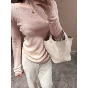 重工烫钻高级感白色针织衫女春秋法式气质修身长袖内搭打底衫上衣