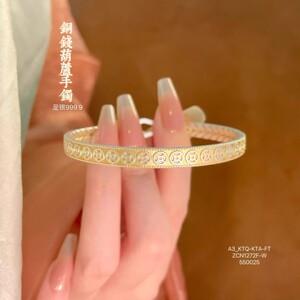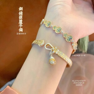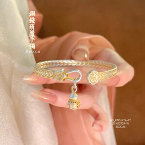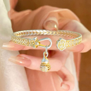 铜钱葫芦手镯新中式国风麦穗手环描金钱币镯子白铜实心直播新款女