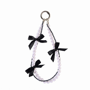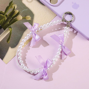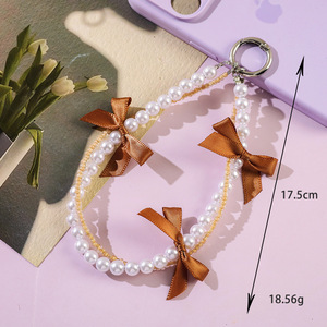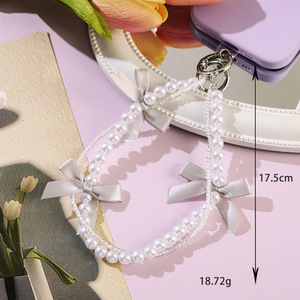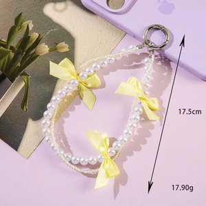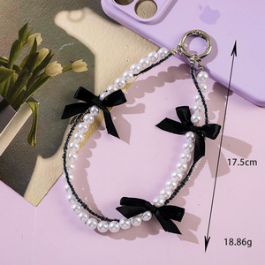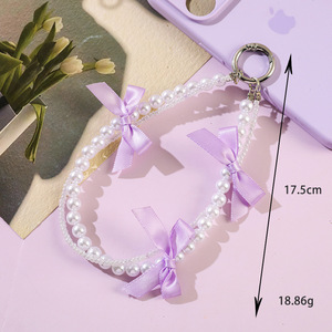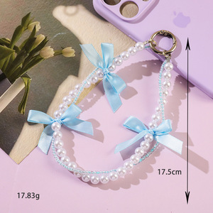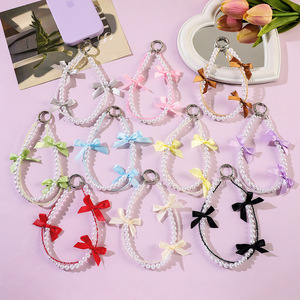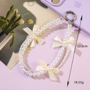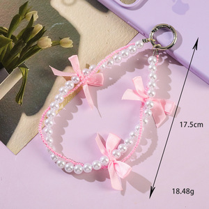 ins风珍珠手机链芭蕾风蝴蝶结链条简约手机壳钥匙扣包包挂链挂饰