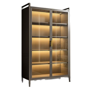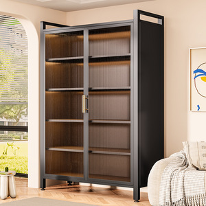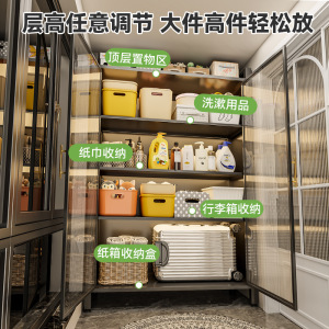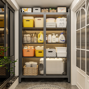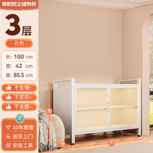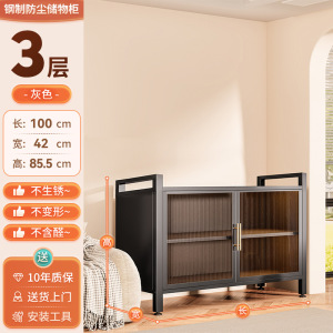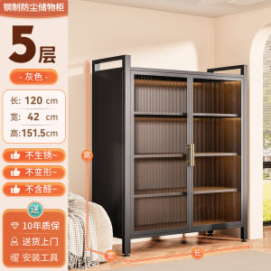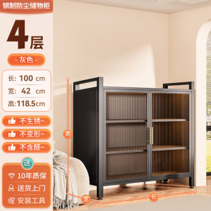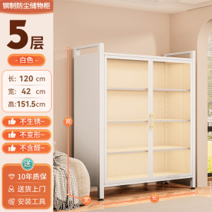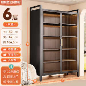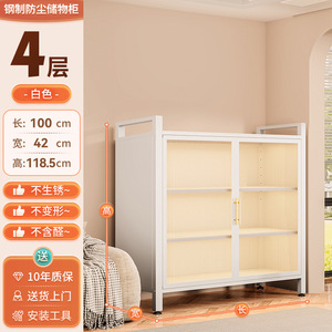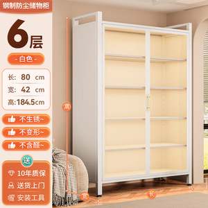 家用钢制对开门储物柜落地一体防尘收纳柜阳台客厅多层可调节柜子
