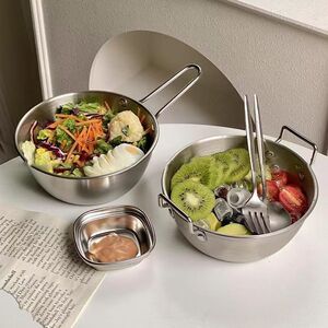 高颜值双耳泡面碗宿舍学生不锈钢泡方便面可沥水汤盆碗家用小吃碗