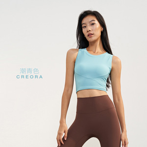 严选美式复古带胸垫瑜伽背心女夏季健身文胸跑步无袖弹力运动内衣