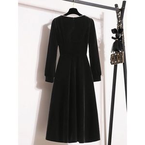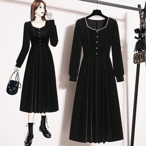 胖MM遮肚收腰气质黑色金丝绒显瘦新款大码女装秋冬2025方领连衣裙