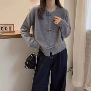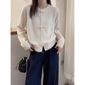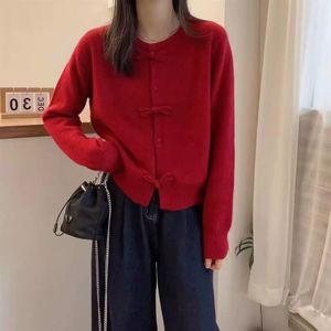 新品感洋气新年红色夏优雅气质圆领新品开衫盘扣毛衣外套