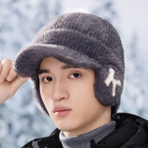 毛绒线保暖帽子冬季男防风寒针织鸭舌帽户外中年男骑车运动耳包帽