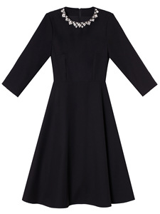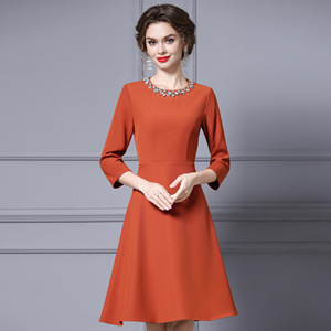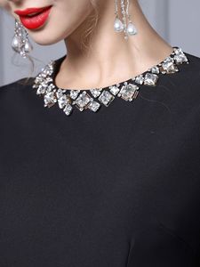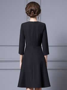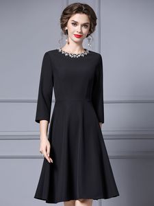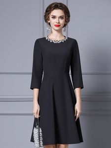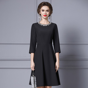 智丽大方得体绝美连衣裙2025新款秋装高级感黑色钉钻打底A字裙子