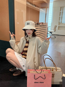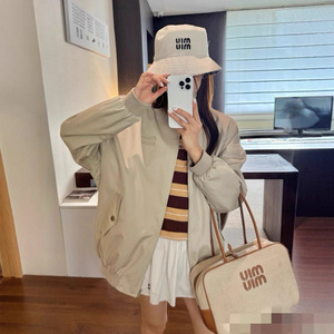 高品质miu缪缪25ss早秋新款高奢贴布刺绣夹克衫外套