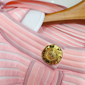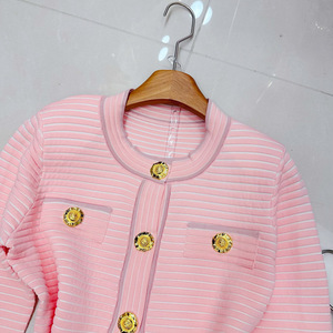 南油欧美澳洲小香条纹圆领套装金扣开衫百褶短裙针织两件套