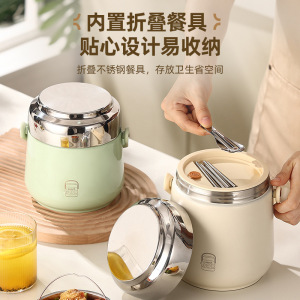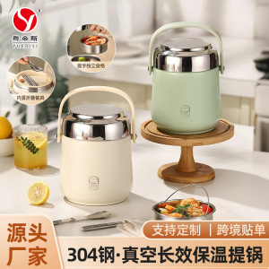 跨境 304不锈钢大容量饭桶学生上班族真空保温提锅带餐具分格饭盒